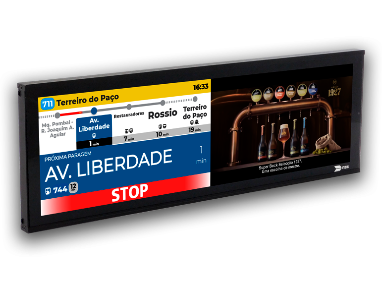 Brilho de 1000 cd/m² para garantir leitura clara mesmo em zonas com elevada exposição solar.